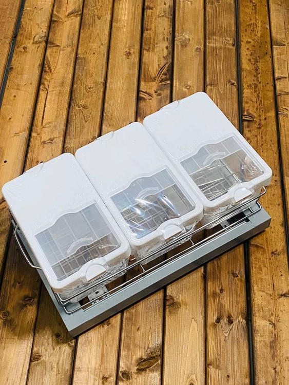 جا حبوبات ریلی سه عددی داخل کابینت بهترین انتخاب برای آشپزخانههای مدرن است. این ست کاربردی با طراحی کشویی روی ریل فلزی نصب میشود و با یک حرکت ساده، هر سه محفظه از داخل کابینت بیرون میآید.