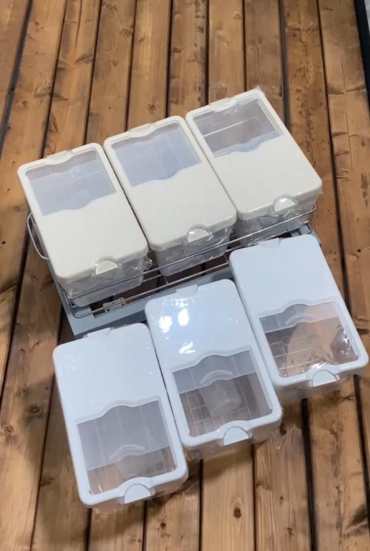 جا حبوبات ریلی سه عددی داخل کابینت بهترین انتخاب برای آشپزخانههای مدرن است. این ست کاربردی با طراحی کشویی روی ریل فلزی نصب میشود و با یک حرکت ساده، هر سه محفظه از داخل کابینت بیرون میآید.